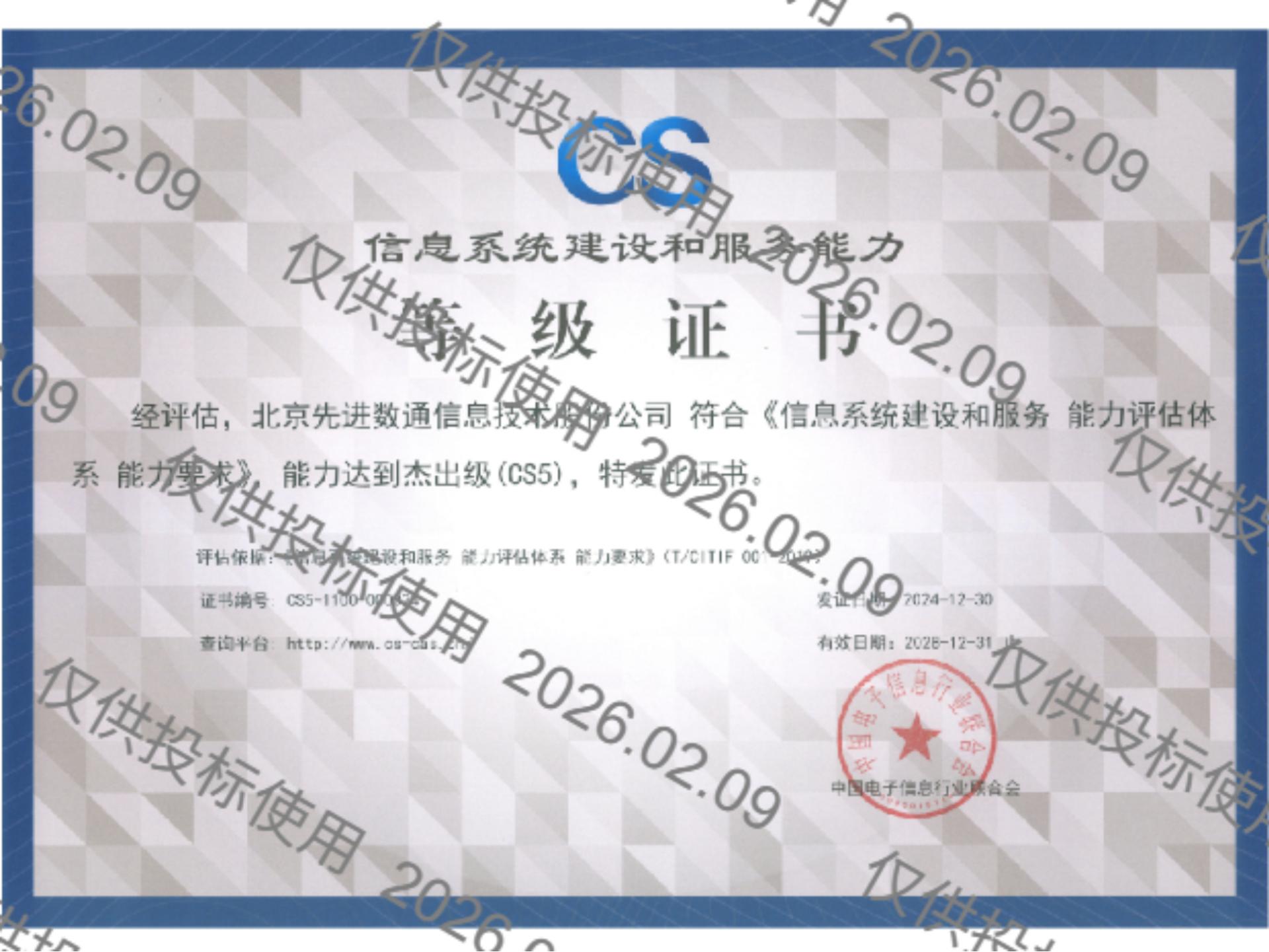 森林舞会先后取得CMMIL5、软件能力成熟度五级(SPCA 5)、信息系统建设和服务能力评估体系(CS)5级、ITSS成熟度一级、信息系统安全集成服务资质二级、信息系统安全运维服务资质二级、国产化信息系统集成和服务能力评估四级(LS4)、北京市企业技术中心等资质认证,并取得ISO9001、ISO20000、ISO27001、ISO14001、ISO45001、ISO22301、ISO37001、ISO28001、GBT29490等标准体系认证,具备行业领先的技术开发、工程实施及服务保障能力。